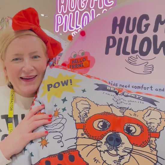 Meet Brave Beryl the little dog with a heart as big and brave as a lion. Bravery is Beryl's superpower xx We believe in inspiring children through positive affirmations that can profoundly impact them. They help shape a child’s mindset, boost self-esteem, and foster a positive outlook on life. Affirmations can benefit children’s self-esteem and confidence, encourage a growth mindset, reduce anxiety plus stress and promote positive behaviour in a world that requires resilience. Brave Beryl’s motto is " I am brave even when it's super scary”. We encourage children to write down their Brave thoughts and pop them in the envelope on the pillow each night to maintain a consistent and personalised routine. The reverse of the pillowcase is our Hug Me Pillows personal favourite motto, which every child embodies, “ You are kind. You are smart. You are important xx”. Brave Beryl is made of 100% recycled polyester, which has a gorgeous soft feel that is perfect for big hugs! Our factories have been chosen carefully to high welfare standards. We have elected Oeko-Tex non-hazardous end products and Forest Stewardship Council-approved cardboard. Inside the packaging features a Brave Beryl play Time activity sheet to reuse and reduce packing waste. For more information, please visit our “About us” page. (Please note, pillow inner cushion not included.)