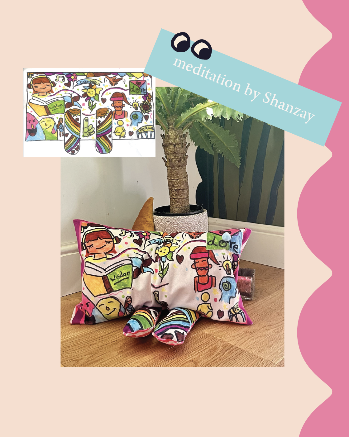 Aw what lovely concept, we love the idea that your colourful pillow provides calmness, wisdom and peace. You have put lots of time and thought into your pillow which is wonderful, well done.