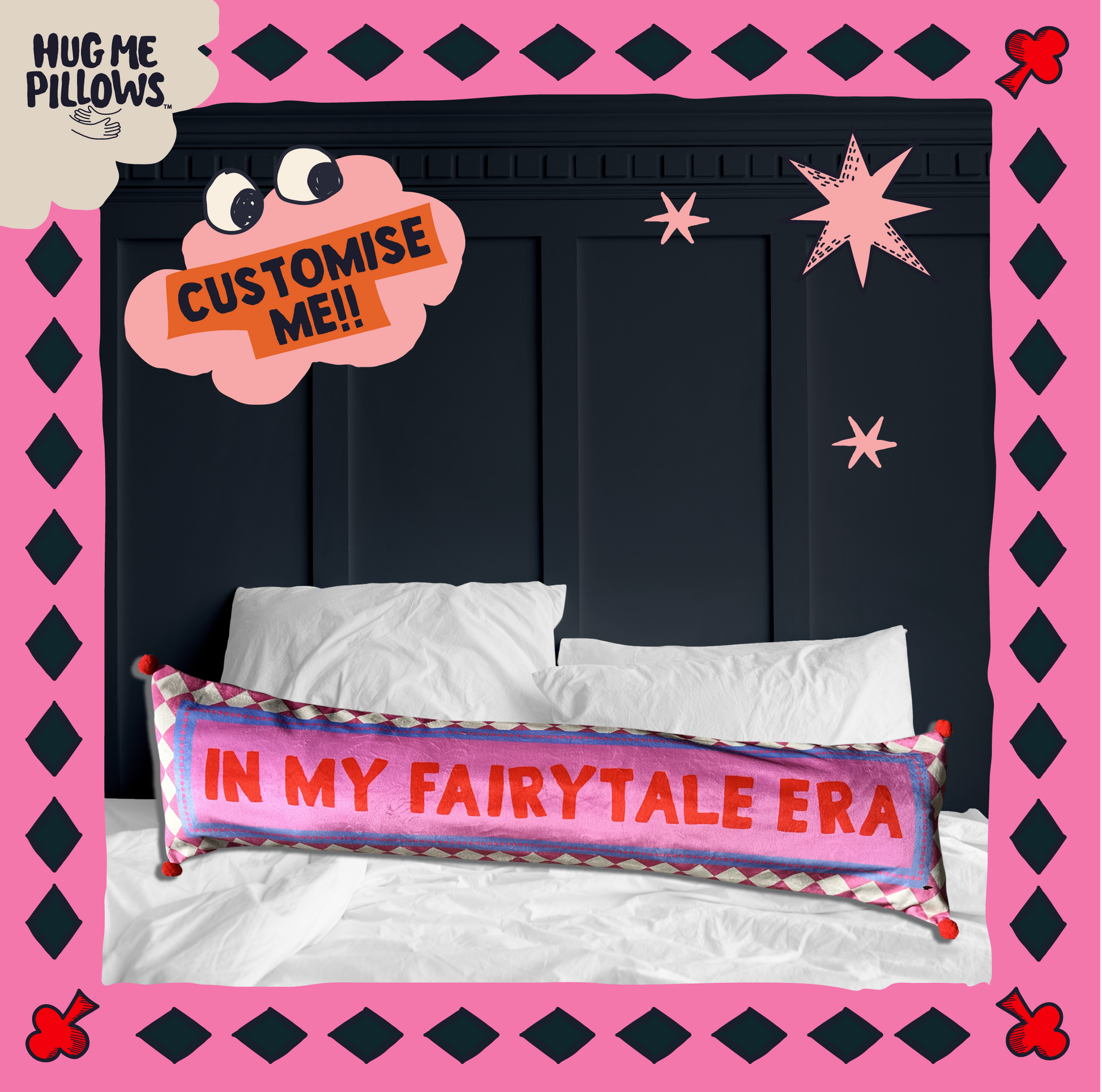 Well hello!! Introducing the "In My Fairytale Era" bolster pillow designed by the super talented Charlie @ourss9 !! (Check out her whimsical style on instagram!) Our new Velvet Bolster Pillow – is customisable and crafted with super soft and cosy velvet, this plush bolster pillow invites you to drift into a world of relaxation and style.