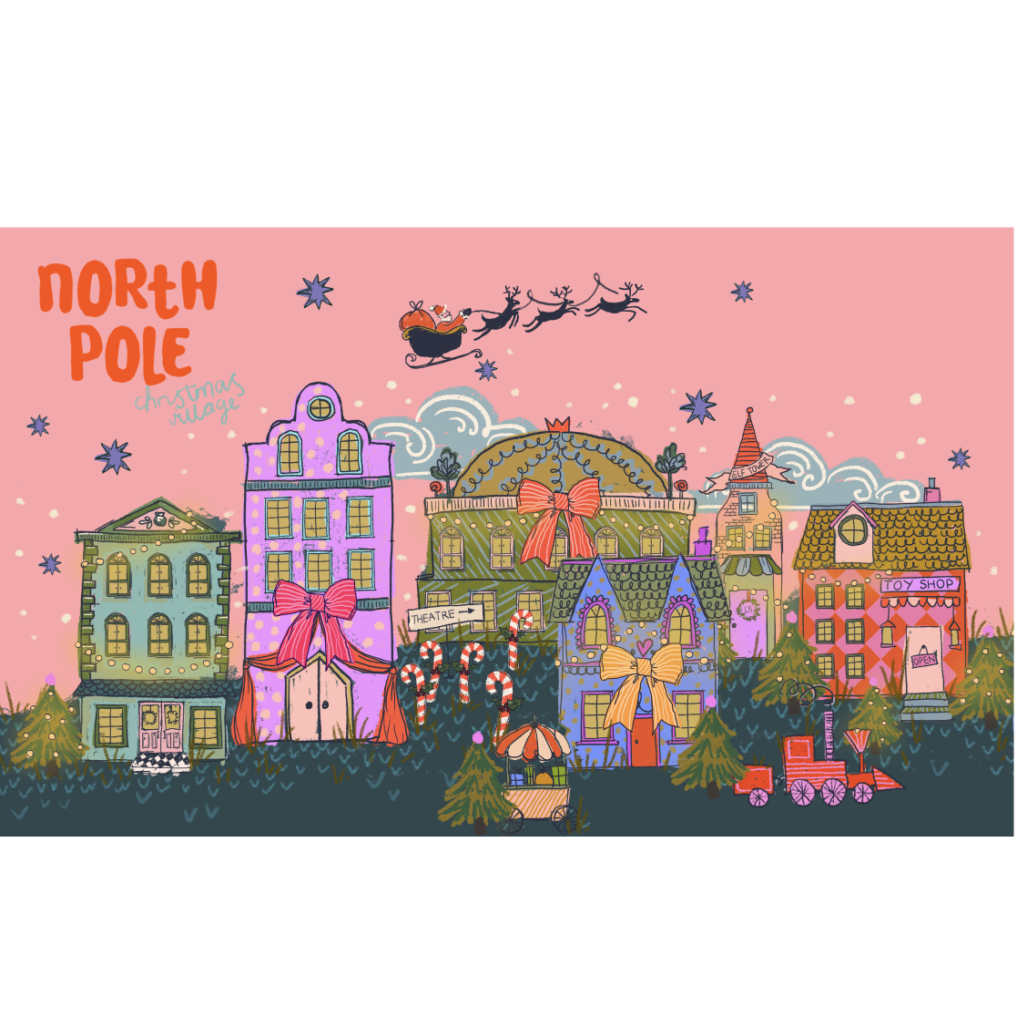Our made-to-order velveteen bolster brings a touch of wit and winter warmth to your space. One side features a softly detailed North Pole Village, the other a bold “Naughty but Nice” slogan — because we all have a bit of both.